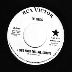 Spawned on the University of Rhode Island campus in early ‘65, The Others recorded their classic punker "Can’t Stand This Love, Goodbye" for RCA in June of the same year. The song was released that fall and The Others soon became one of RI’s most popular bands. The band released three singles between ’65 and ’67. Two issued on RCA and one on Jubilee. Their sound was a combination of punk, pop, and folk. Their sound ranged from sigh-cry-and-die moaners, epitomized in their single "Until I Heard It From You", to drug-referenced-bubblegum-psych, with the aptly titled "My Friend the Wizard". These efforts are worthy of high acknowledgment. The members: Jim Destout, Mike Brand, Pete Shepley, John Costa, and Mike Patalano were all URI students, except Costa who attended Brown, would end their assocation by the fall of ‘65. Costa left to concentrate on his studies and was replace by another Brown student, Bob Johnson, until their end in 1968. The songwriters in the band Mike Brand and Pete Shepley would go on to form the band Chelsea in NYC around ‘69. Some cat in this group would later resurface in band called KISS. "Can’t Stand This Love, Goodbye" can be found on Pebbles Vol. 5. Other The Others’ tunes are complied on mindbenders V.9 & 12.
