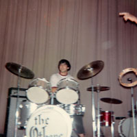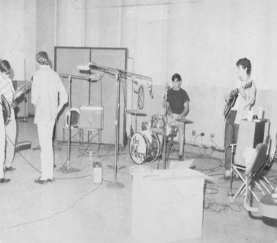 A guy I played with in High School, Jim DeStout, also went to URI. Jim was on the same dorm floor as Mike Brand and Pete Shepley. The three of them got together and played around with some music. When they got the urge to put a group together to jam, Jim got a hold of me to play drums, and Pete got his friend from Brown, John Costa,to come down to play bass. We jammed one Sunday afternoon and were surprised how good we sounded—all Beatles and Stones—we all loved that music and knew our individual parts perfectly. We melded immediately. We decided to enter a, how about this, talent show, at URI. Some football players who had an accapella group won, but we brought the house down with When I Get Home and Slowdown. From there we immediately got a few gigs on campus.